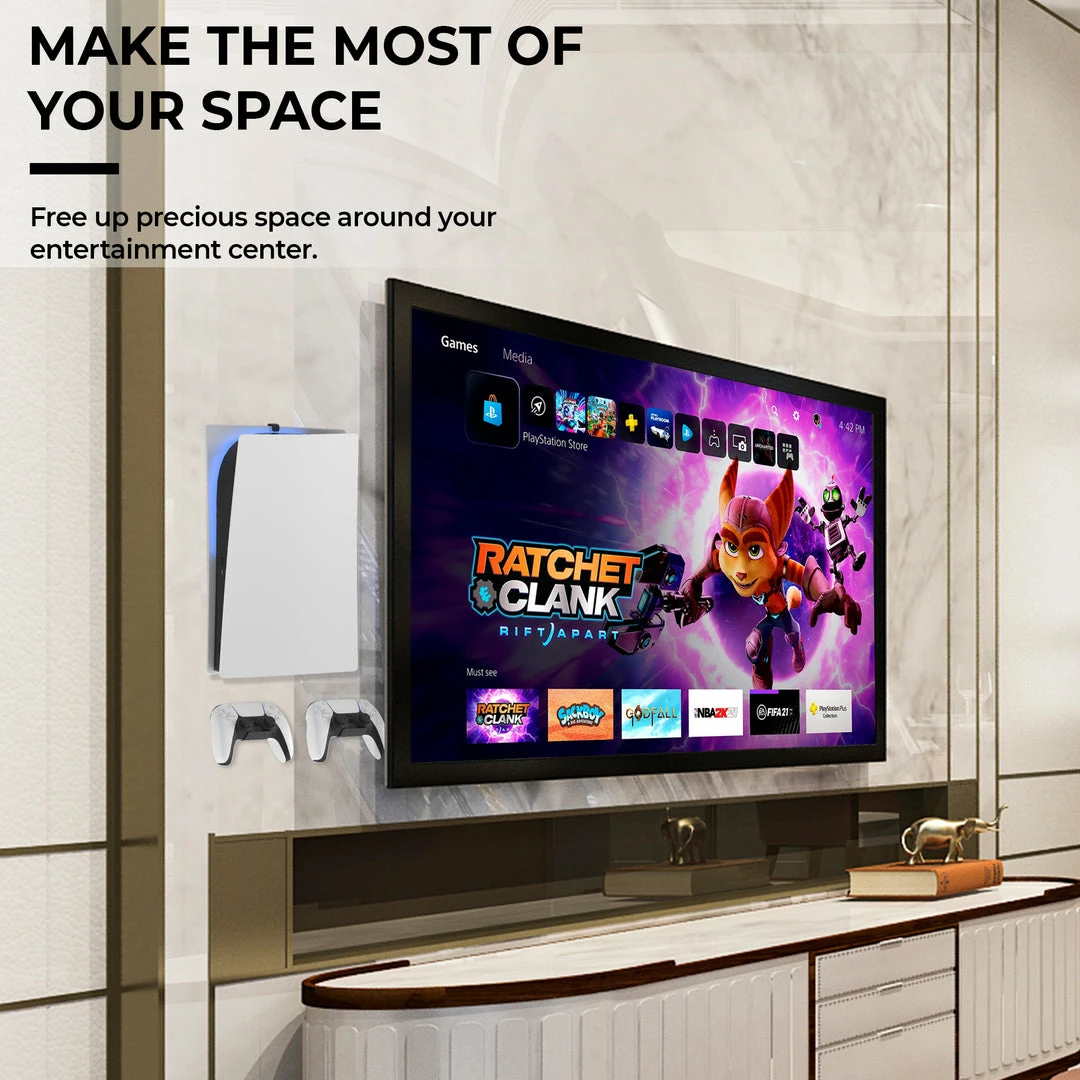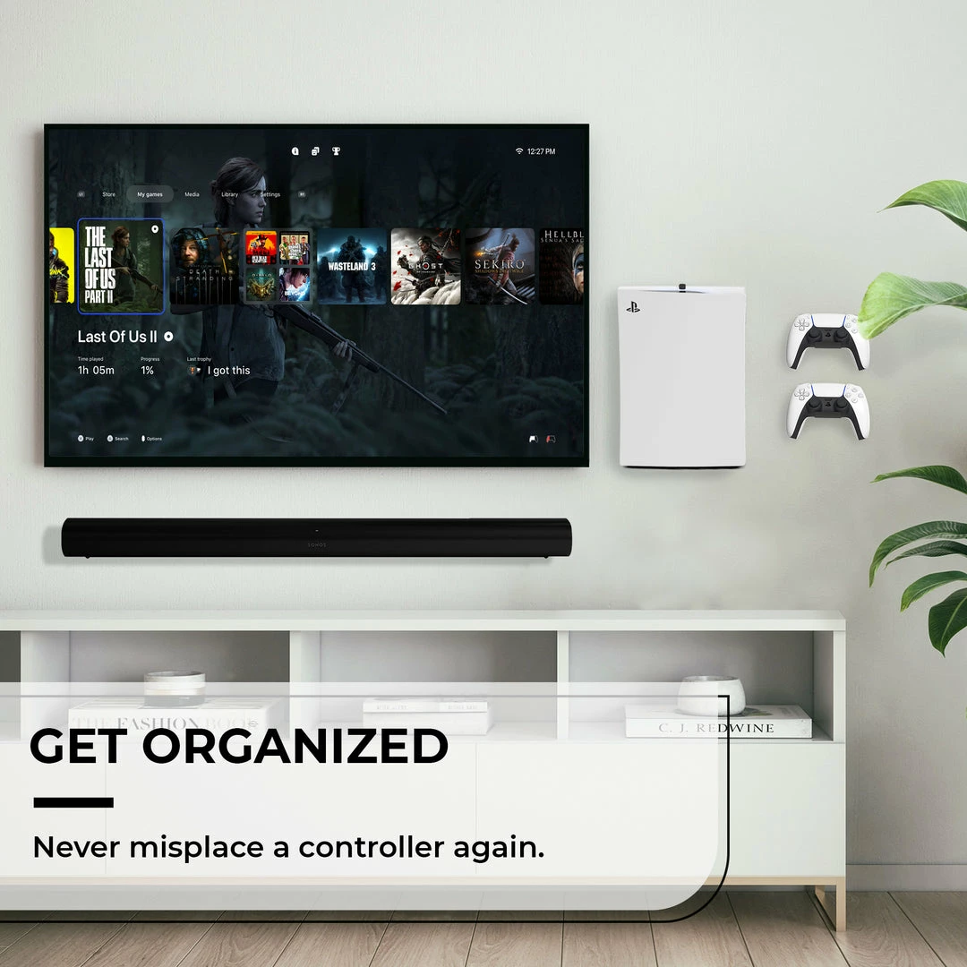 - Organize your gaming area with a custom wall mount for PS5 designed in Chicago. Hide your cables and declutter your gaming area. Never misplace a controller again.